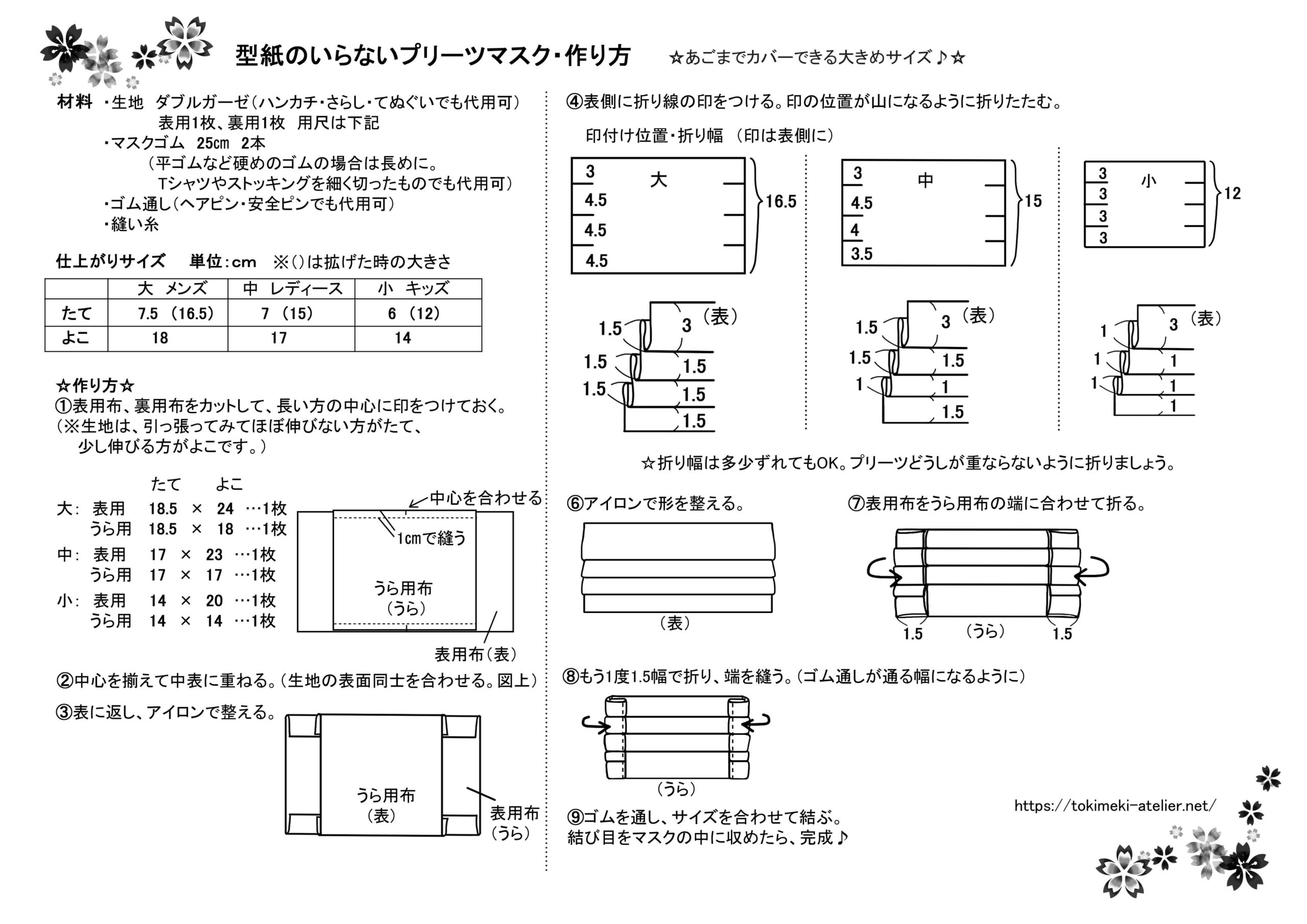 プリーツマスクの完成写真、